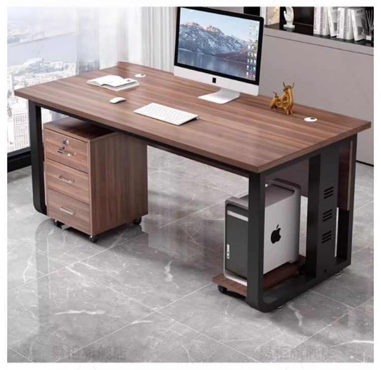 مكتب موظفين عملي بسطح خشبي واسع ووحدة أدراج جانبية، يوفر ترتيب ممتاز للشغل اليومي بدون زحمة