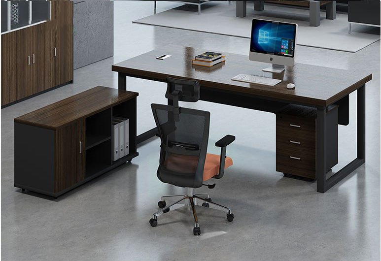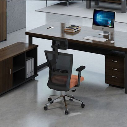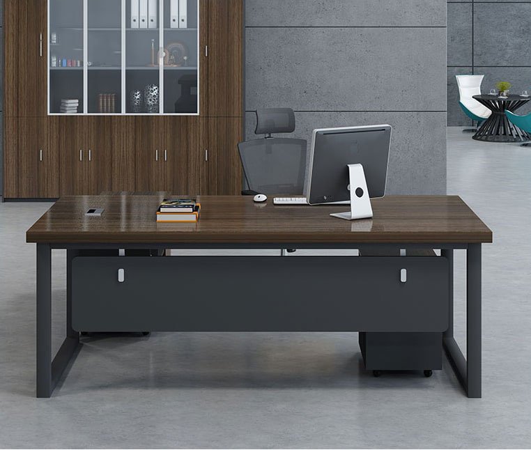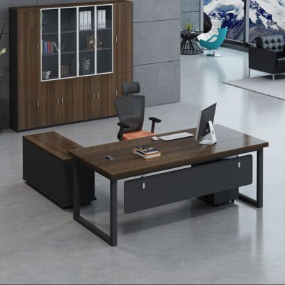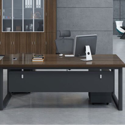 تصميم عملي بلمسة عصرية يدي مساحة شغل مريحة للكمبيوتر والكتابة وتجهيز الملفات. السطح الكبير يساعدك ترتّب كل أدواتك بدون تكديس، ومعه وحدة جانبية مدمجة تخليك تستفيد من المكان في التخزين والترتيب بشكل ذكي. القاعدة المعدنية بتدي ثبات قوي وشكل حديث، بينما اللمسة الخشبية تضيف فخامة بسيطة تناسب المكاتب الإدارية وبيئات العمل المختلفة
