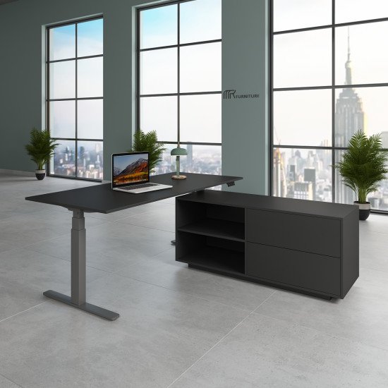 تصميم حديث بمسطح واسع مع وحدة جانبية للتخزين، مناسب لتنظيم الشغل اليومي بشكل أنيق وعملي