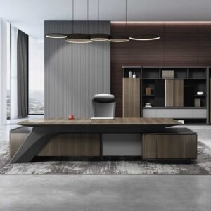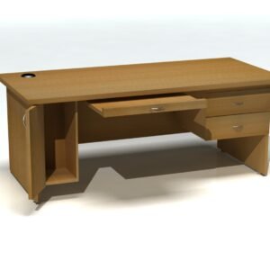 المكتب ده مناسب للمكاتب الإدارية وغرف العمل لأنه بيجمع بين الشكل المرتب والاستخدام العملي. سطحه الواسع يديك مساحة مريحة للكمبيوتر والكتابة وترتيب المستندات بدون تزاحم. على الجانب فيه أدراج متعددة تساعدك تخزن الملفات والأوراق والأدوات المكتبية بشكل منظم وسهل الوصول. التصميم الخشبي يعطي إحساس دافي ويليق مع أغلب الديكورات سواء كانت حديثة أو كلاسيكية بسيطة. كمان الفراغ السفلي مريح للحركة والجلوس لفترات طويلة، وده يخليه اختيار ممتاز للشغل اليومي والدراسة