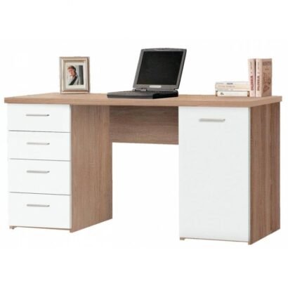 المكتب ده معمول عشان يديك مساحة مريحة للشغل والمذاكرة مع ترتيب واضح لكل حاجتك. السطح العلوي كبير ومناسب للكمبيوتر والكتب والأدوات، وفي نفس الوقت بيحافظ على شكل مرتب للمكان. ناحية فيها مجموعة أدراج تساعدك تقسّم المحتويات وتوصل لأي حاجة بسرعة، والناحية التانية وحدة تخزين مقفولة مناسبة للحاجات اللي تحب تخليها بعيدة عن العين وتحافظ عليها من التراب. تصميمه بسيط وعصري، وبيخليه مناسب للمكاتب الإدارية أو غرف المذاكرة، وكمان عملي جدًا لو بتستخدمه ساعات طويلة