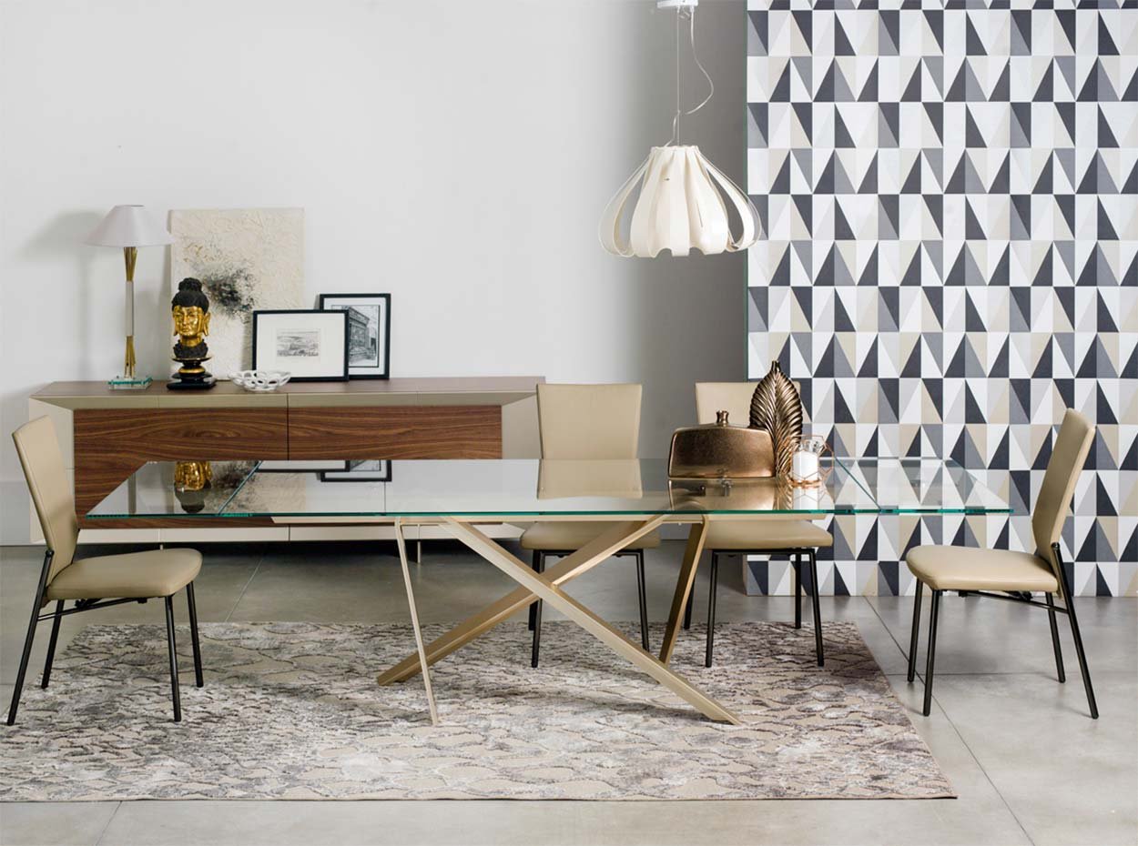 طاولة سفرة بطابع حديث تعتمد على خطوط بسيطة وشكل “خفيف” يدي إحساس بالاتساع داخل الغرفة. سطحها الطويل عملي لتوزيع الأطباق وتجهيز السفرة بسهولة، والقاعدة المعدنية تضيف لمسة ديكور مميزة مع ثبات جيد. مناسبة جدًا لغرف الطعام المودرن أو مساحات المعيشة المفتوحة، وتنسجم مع كراسي خفيفة وألوان حيادية أو جريئة حسب الديكور