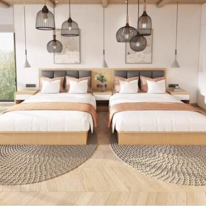 تصميم فاتح يمنح إحساسًا بالاتساع ويناسب الغرف المزدوجة ذات السرير الكبير