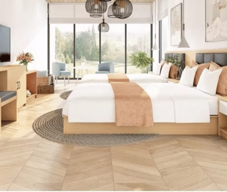 غرفة النوم الفندقية دي آر 202 تأتي بطابع عصري فاتح يركز على الإحساس بالاتساع والهدوء، مناسبة للغرف المزدوجة التي تعتمد على سرير كبير مزدوج مع وحدات جانبية عملية. يظهر في التوزيع وحدة تلفزيون/تسريحة مقابل السرير لتسهيل الاستخدام اليومي، مع مسارات حركة واضحة تجعل الغرفة مريحة للضيف أثناء الإقامة. التصميم العام يبرز بنوافذ واسعة وإضاءة مميزة تضيف إشراقًا للمكان. تُنفَّذ الغرفة من ألواح خشبية صناعية عالية الجودة مع خيارات متعددة للألوان والتشطيبات حسب الطلب، ويمكن تعديل المقاسات والتوزيع وفق مخطط الغرفة المعتمد لتحقيق أفضل استغلال للمساحة.