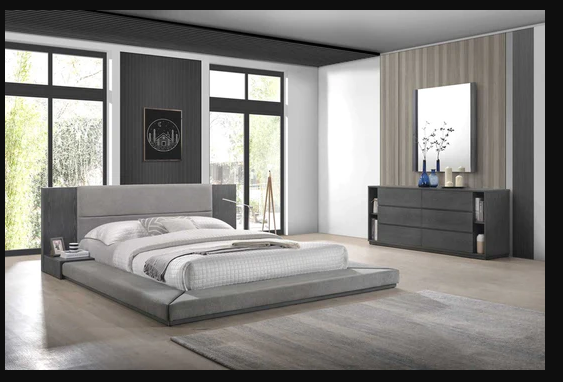تجمع هذه الغرفة بين البساطة الراقية والأسلوب المعاصر في تكوين يمنح المكان حضورًا هادئًا ومظهرًا منظمًا. يبرز تصميمها من خلال السرير المنخفض والخطوط المستقيمة التي تعطي إحساسًا بالاتزان والرحابة، بينما تضيف الدرجات الرمادية مع الخلفية المخططة لمسة حديثة تناسب المساحات العصرية. كما أن توزيع القطع بشكل واضح بين السرير ووحدة الأدراج والمرآة يحافظ على راحة الحركة داخل الغرفة ويجعلها تبدو أكثر ترتيبًا وانسجامًا. وتعد هذه الغرفة اختيارًا مناسبًا لمن يفضل الأناقة الهادئة والتصميم العملي الذي يمنح راحة بصرية وشكلًا مميزًا في الوقت نفسه