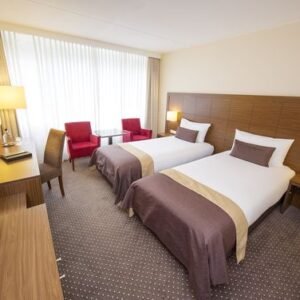 غرفة نوم فندقية بتجهيز متكامل للغرف المفردة أو المزدوجة. تُصنّع بألوان وتشطيبات متعددة حسب الطلب، ويمكن تجهيزها وتسليمها مفروشة بالكامل مع الديكور ووحدات الإضاءة لتجربة إقامة متكاملة