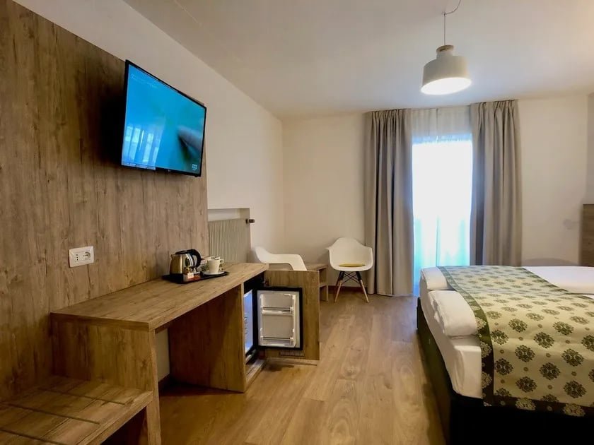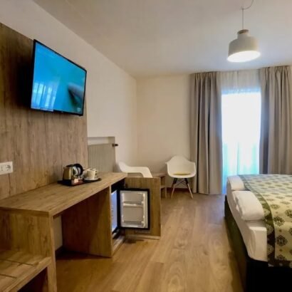 تجهيز فندقي متكامل يشمل وحدات عملية مثل المكتب ووحدة التلفزيون لراحة الضيف