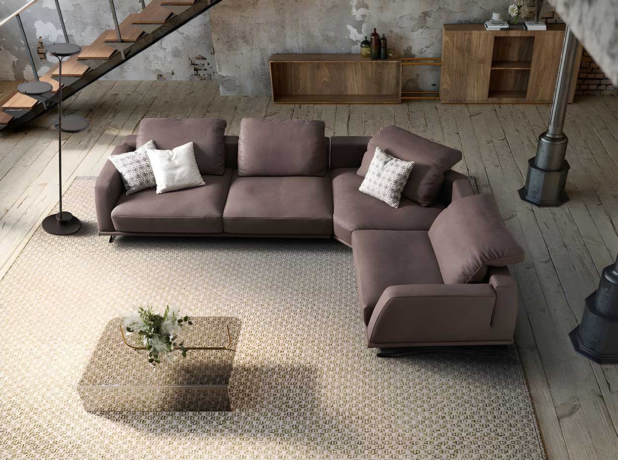 كنبة ركنة مودرن بلون موف هادي، بتدي فخامة وراحة في نفس الوقت وبتنظم شكل القعدة بشكل عملي