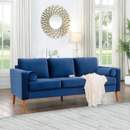 كنبة المعيشة آر 501 بتصميم عصري بسيط يناسب غرف المعيشة والاستقبال، مع ثلاث مقاعد واسعة لراحة الجلوس اليومية. لونها الأزرق يعطي لمسة أنيقة وهادئة، ويمكن تنسيقها بسهولة مع وسائد بألوان مختلفة لإبراز ديكور المكان. تصميم الذراعين المريح مع الوسائد الجانبية يوفّر دعمًا أفضل، والقاعدة المرتفعة تساعد على سهولة التنظيف أسفل الكنبة. تتوفر بخيارات متعددة من الأقمشة والألوان حسب الطلب لتناسب مساحة الغرفة وطابعها.