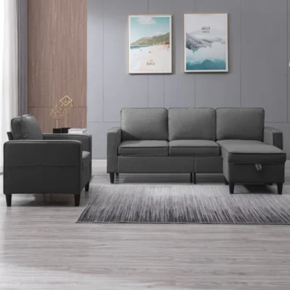 كنبة المعيشة آر 503 بتصميم عملي يناسب الجلسات اليومية والمساحات المتوسطة، ومعها جزء جانبي (شيزلونج) يديك مساحة إضافية لتمديد الرجلين أو الاسترخاء. اللون الرمادي الغامق أنيق وسهل في التنسيق مع ألوان الحوائط والسجاد، وكمان عملي في الاستخدام اليومي. تكوين الكنبة يسمح بتوزيع الجلسة بشكل مريح للضيوف والعائلة، والوسائد الخلفية تعطي دعم أفضل للظهر. مناسبة للمعيشة أو صالة الاستقبال وتقدر تنسقها مع طاولة وسط بسيطة وإضاءة هادئة لستايل عصري مرتب.