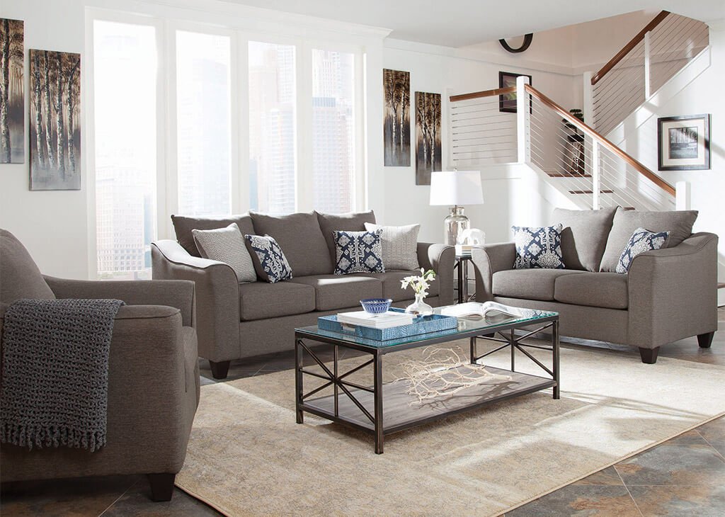 طقم كنب معيشة آر 505 باللون الرمادي المحايد، تصميم عصري مريح بجلوس واسع مناسب للريسبشن والمعيشة وسهل التنسيق مع مختلف الألوان