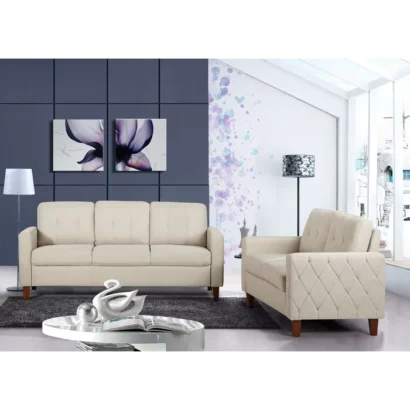 تجميعة مريحة بتصميم بسيط وأنيق، تعتمد على لون محايد يبرز جمال الإضاءة ويخلي الغرفة شكلها أوسع. الكنبة الأساسية مناسبة للجلوس اليومي، ومعها قطعة جانبية تضيف تنوع في التوزيع وتخلي الجلسة عملية للضيوف. القماش الفاتح يعطي إحساس بالنظافة والهدوء، ومع الإكسسوارات مثل المخدات أو السجاد تقدر تغيّر ستايل المكان بسهولة من عصري إلى كلاسيكي خفيف. مناسبة للأماكن اللي فيها ألوان جريئة على الحوائط أو ورق جدران لأنها بتعمل توازن بصري جميل