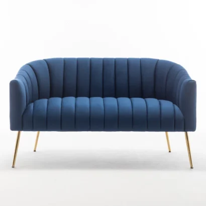 كنبة مودرن بمقاس عملي يناسب المساحات الصغيرة والمتوسطة، بتصميم منحني يدي إحساس بالنعومة والراحة من أول نظرة. التنجيد بخطوط طولية مرتبة يضيف لمسة فخامة بسيطة من غير زحمة، واللون الأزرق بيبان شيك جدًا مع الديكورات الفاتحة والأرضيات الخشبية. القاعدة الرفيعة والرِجلين الرفيعة تعطيها شكل خفيف على المكان وما تخنّقش المساحة، وده يخليها اختيار ممتاز جنب شباك أو في ركن استقبال خفيف أو حتى في صالة انتظار. تقدر تنسيقها بسهولة مع ترابيزة جانبية صغيرة وإضاءة أرضية، ومع مخدة واحدة بلون فاتح لو حابب توازن اللون