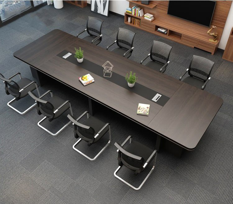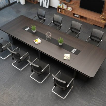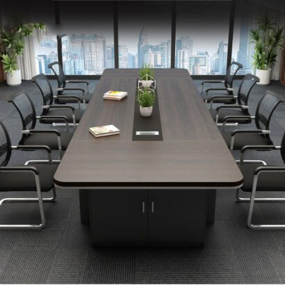 التصميم مناسب للاجتماعات اليومية وجلسات التخطيط الطويلة، لأن المساحة الكبيرة تدي لكل شخص مكانه بدون زحمة. سطح العمل يسمح بوضع اللابتوبات والملفات والأدوات بسهولة، ومع توزيع الكراسي حول الطاولة الحركة بتكون سلسة والدخول والخروج مريح. الشكل العام عملي وأنيق في نفس الوقت، وده يخلي المكان جاهز لاستقبال فريق العمل أو الضيوف بشكل مرتب. اختيار مناسب للمكاتب اللي عايزة مظهر احترافي مع استخدام قوي يتحمل الشغل المستمر