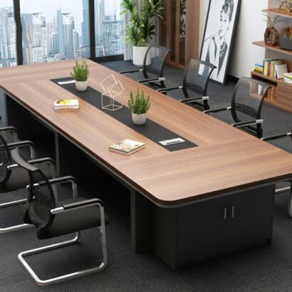 طاولة اجتماعات واسعة بلمسة عصرية، تساعد على ترتيب النقاشات وتنظيم الجلسات بشكل مريح ومهني