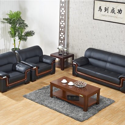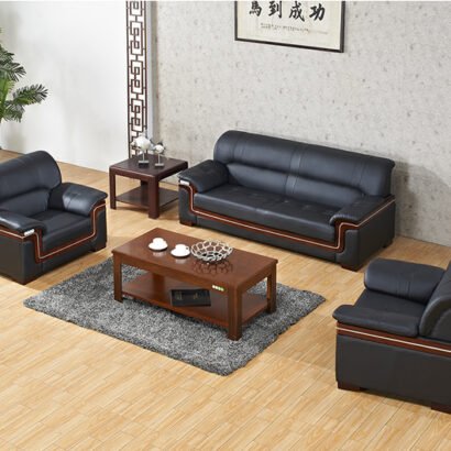 يتميز هذا الطقم المكتبي بتصميم متوازن يجمع بين الأناقة العملية والطابع الرسمي الذي يناسب مكاتب الإدارة ومساحات الاستقبال. يظهر تناغمه من خلال توزيع الكنبة مع المقاعد الفردية والطاولة الوسطية بشكل يمنح المكان تنظيمًا واضحًا وراحة في الاستخدام اليومي. كما تضيف الدرجات الداكنة مع الخطوط الخشبية لمسة راقية تعكس الذوق المهني وتمنح المساحة حضورًا هادئًا ومميزًا. ويعد هذا الطقم اختيارًا مناسبًا لمن يبحث عن أثاث مكتبي يوفر جلسة مريحة ومظهرًا أنيقًا يساعد على استقبال الضيوف والعملاء بصورة احترافية