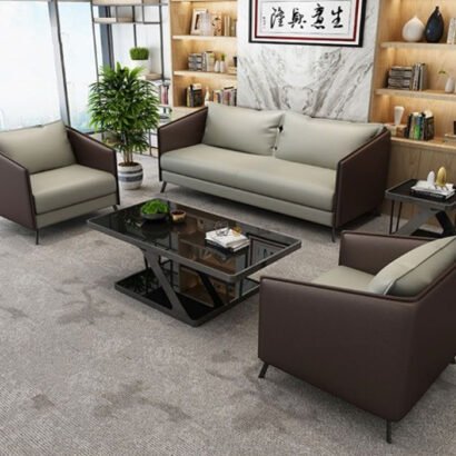 طقم استقبال مكتبي بتصميم عصري وألوان هادئة، يمنح المكان مظهرًا راقيًا ويخلق أجواءً مريحة تناسب بيئات العمل الحديثة