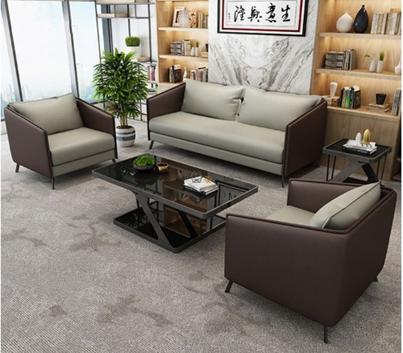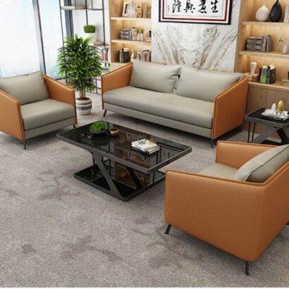 يأتي هذا الطقم المكتبي بتصميم متوازن يجمع بين البساطة الأنيقة والراحة العملية، ليكون مناسبًا لمساحات الاستقبال والمكاتب التي تهتم بالشكل المهني المميز. تتناسق الكنبة الرئيسية مع المقعدين الجانبيين في توزيع يمنح المكان انفتاحًا بصريًا وحركة مريحة، بينما تضيف اللمسات الخشبية الدافئة إحساسًا بالهدوء والرقي. كما تعزز الطاولة الوسطية بتصميمها الحديث من الطابع العصري للمشهد العام، وتكمل الخلفية المنظمة والديكور المحيط صورة مكتب أنيق ومرتب. ويعد هذا الطقم اختيارًا مناسبًا لمن يبحث عن أثاث مكتبي يجمع بين الراحة، والشكل الراقي، والانطباع الاحترافي الواضح