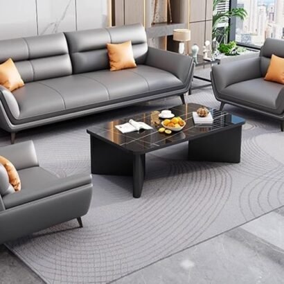 طقم استقبال مكتبي بتصميم راقٍ وخطوط عصرية ناعمة، يمنح المكان أجواءً مريحة ومظهرًا احترافيًا يليق بالمكاتب الحديثة