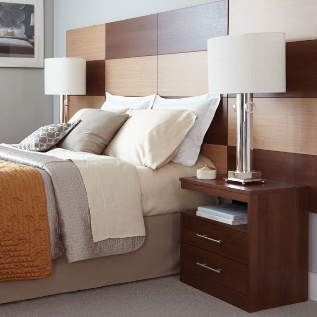غرفة النوم الفندقية إس آر 103 بتصميم عصري أنيق يناسب الغرف المفردة في الفنادق والشقق الفندقية. تتميز بظهر سرير حديث مع وحدات جانبية مثل الكومود لتسهيل الاستخدام اليومي وتنظيم احتياجات الضيف، مع لمسات إضاءة تضيف طابعًا راقيًا للغرفة. تُصنّع من ألواح خشبية صناعية عالية الجودة مع إمكانية اختيار ألوان وتشطيبات متعددة لتتناسب مع ديكور الفندق. كما يمكن تنفيذها بمقاسات مختلفة وفق مخطط الغرفة المعتمد لتناسب الأجنحة أو الغرف الاقتصادية، مع أفضل استغلال للمساحة وراحة أكبر للضيوف.
